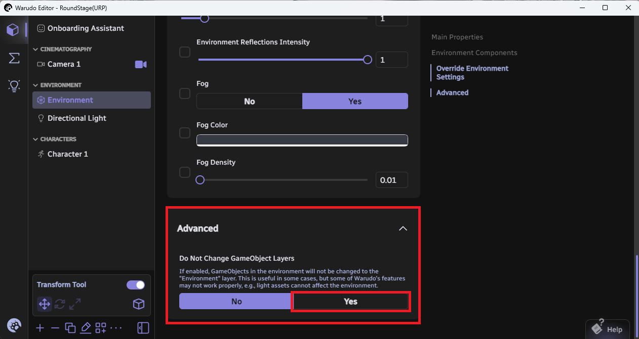 배경을 추가해 주신 뒤 Environment 설정에서 맨 아래 Advanced에 있는 옵션을 "YES"로 선택해주세요