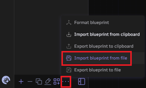와루도 에디터 탭에서 ...을 눌러주신 뒤 Import blueprint from file을 선택하시고