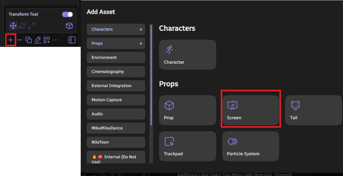 와루도 에디터에서 +를 누르신 뒤 Screen에셋을 추가해주세요