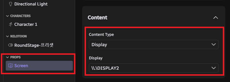 Screen에셋의 Content를 스크린에 보이길 원하는 설정으로 선택해주세요