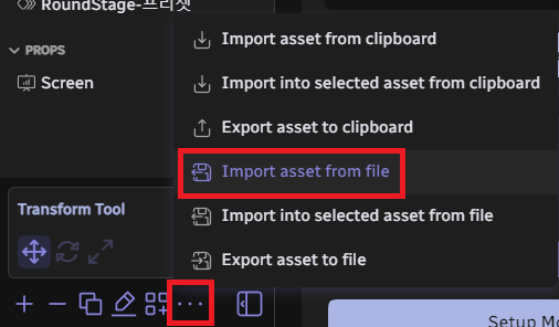 와루도 에디터에서 ...을 눌러 Import asset from file을 선택해 주신 뒤 받으신 파일의 경로에서