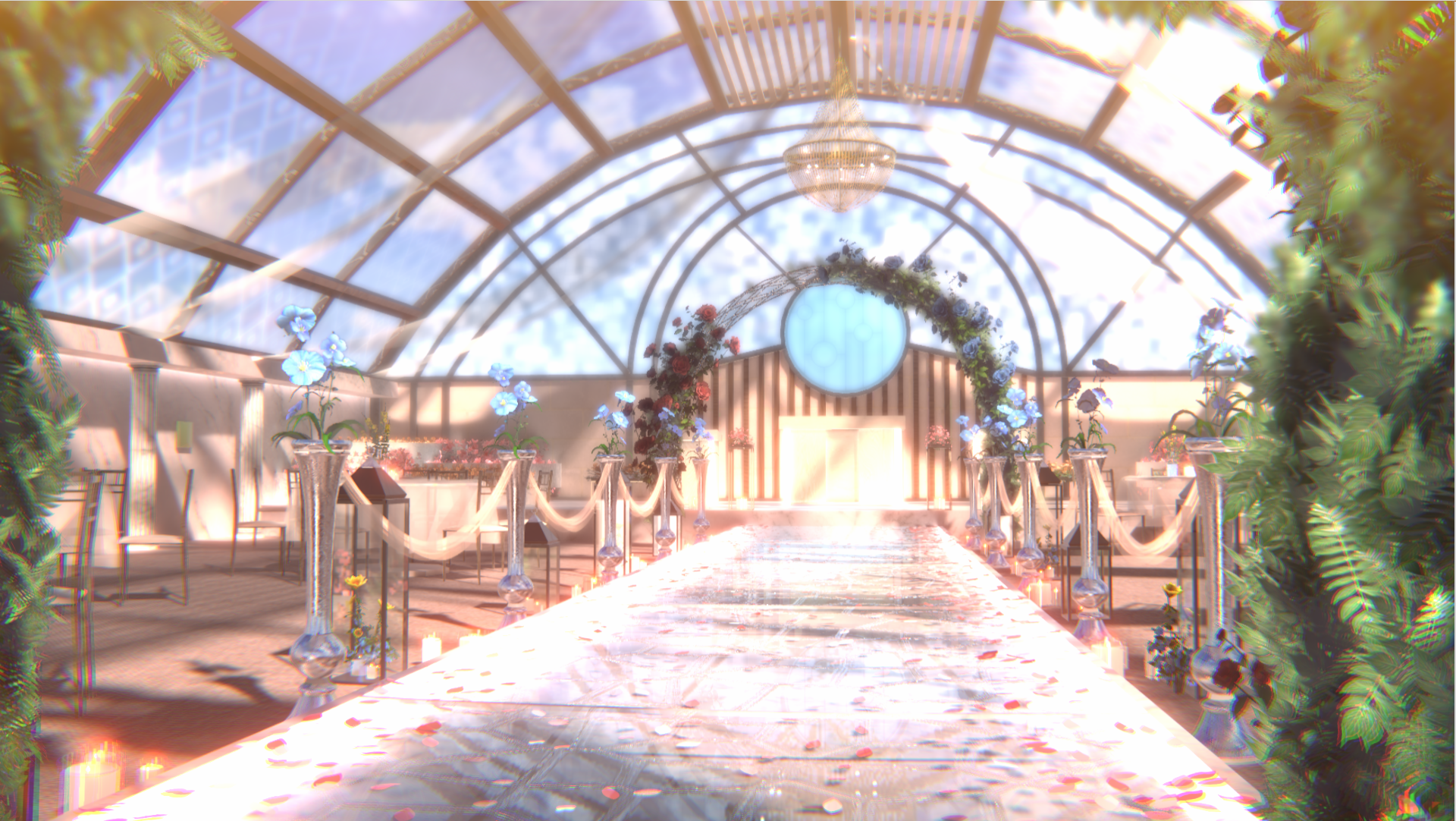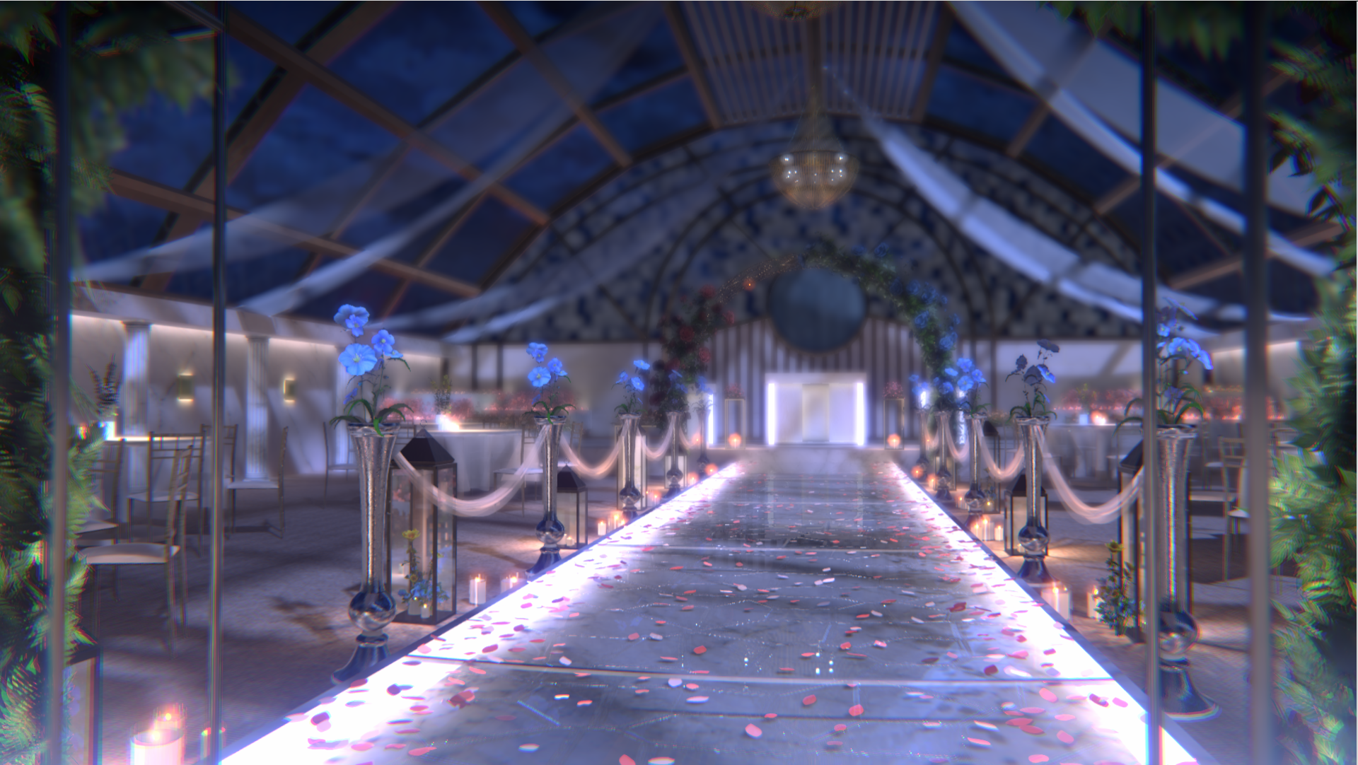 낮과 밤 버전으로 제작되어 다양한 분위기에서의 연출이 가능한 결혼식장 배경입니다.