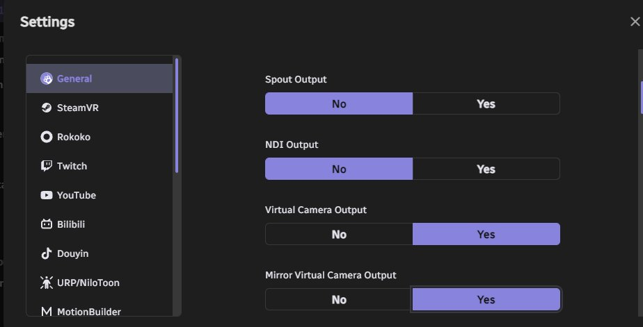 Warudo 설정에서 Virtual Camera Output을 켜고, OBS에서 '비디오 캡쳐 장치 > Warudo Cam'으로 설정하면 에디터 UI가 방송에 보이지 않습니다.