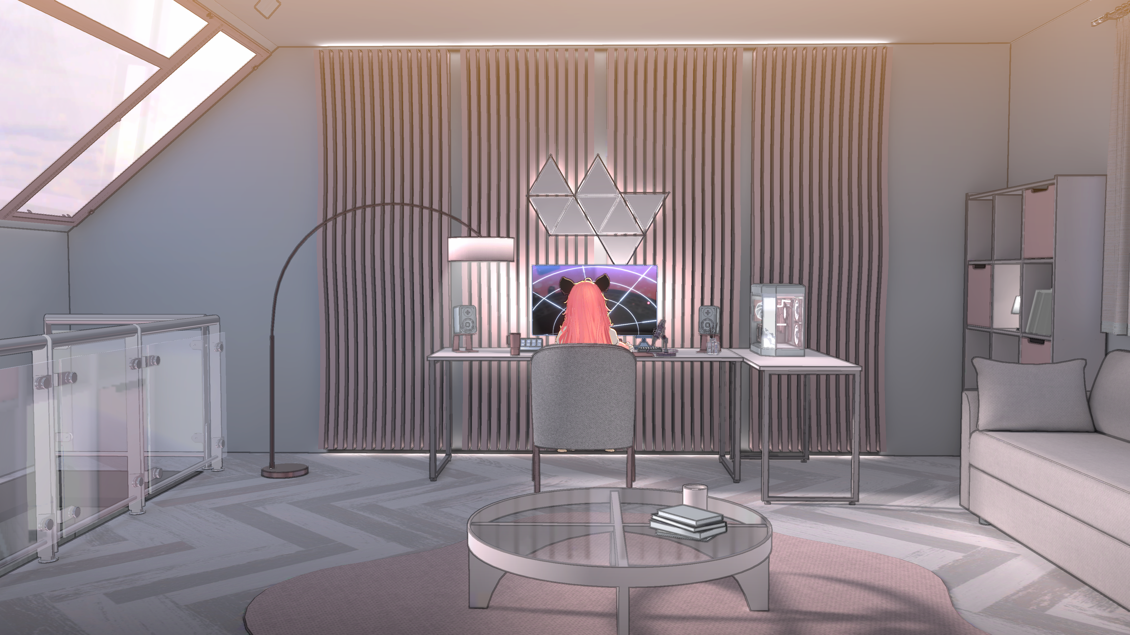 전용 UI를 통해 조명 색상, 모니터 배치, 가구 등을 실시간으로 조절하여 나만의 분위기를 연출할 수 있습니다.