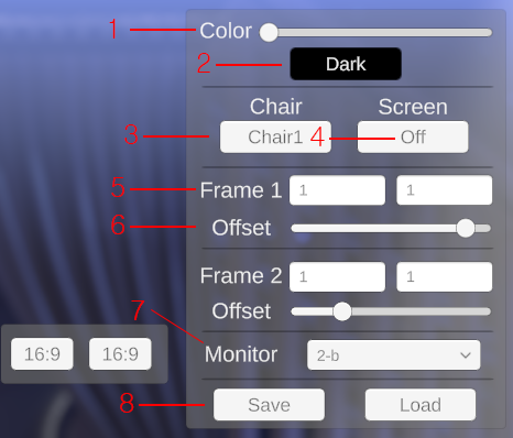 색상 슬라이더: 조명을 원하는 색상으로 자유롭게 조절※ UI는 와루도 카메라 아웃(Virtual Camera) 송출 시 방송 화면에 나타나지 않습니다.