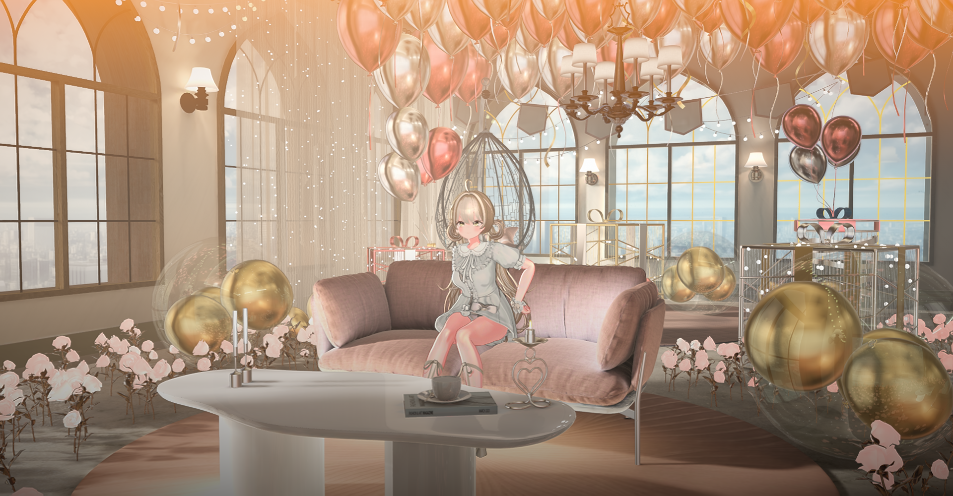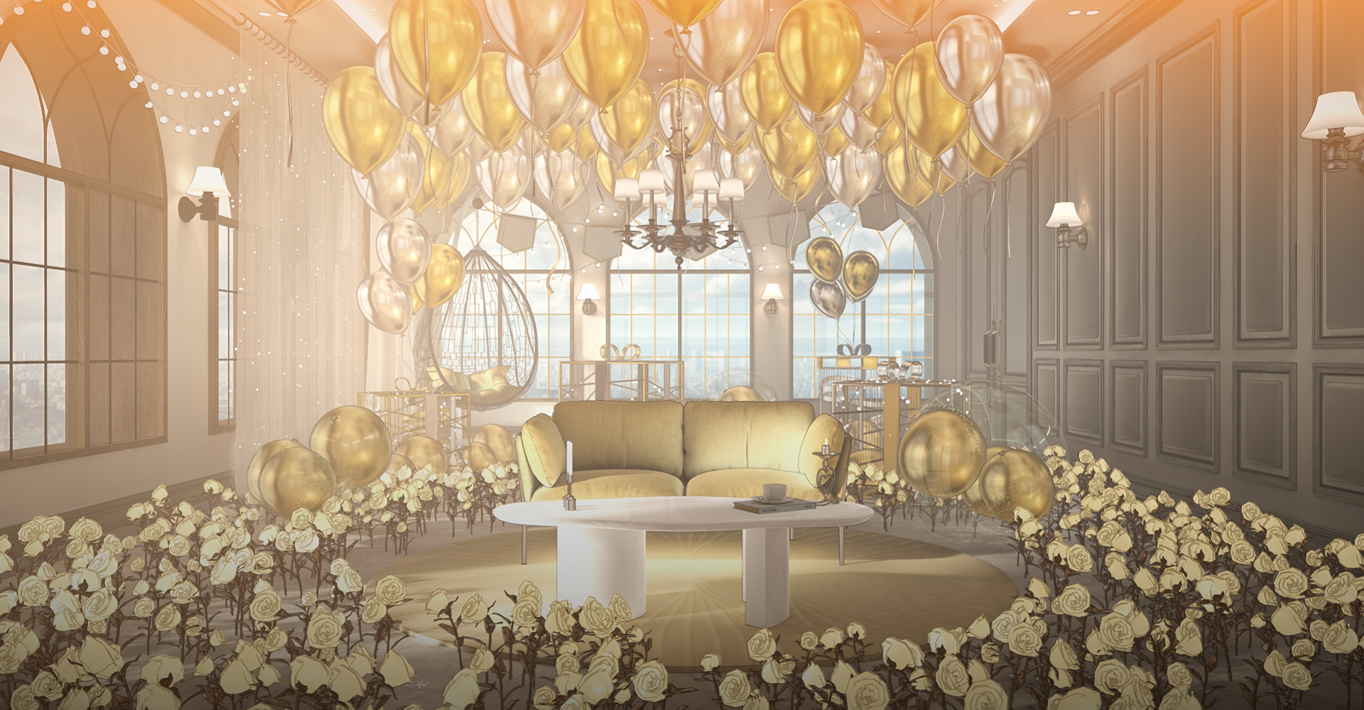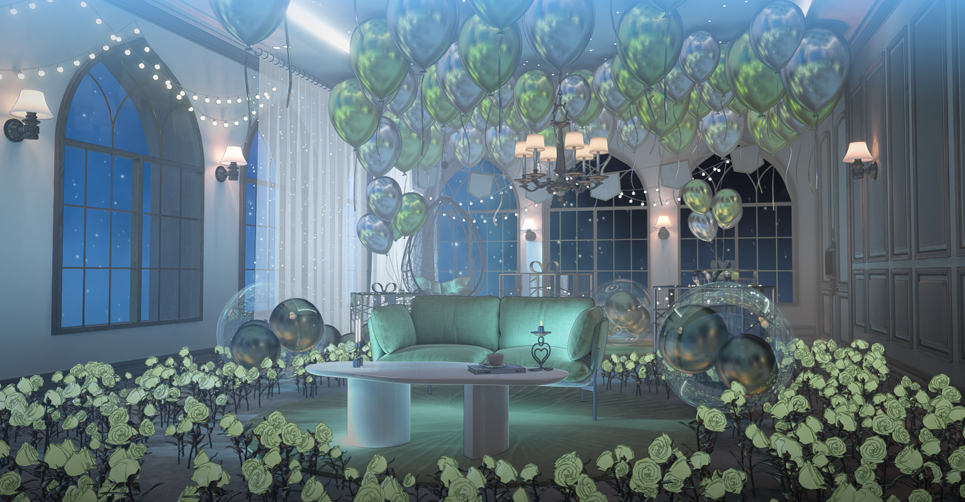 다양한 기념일, 데뷔일, 생일 등에 사용하기 좋은 파티룸 배경입니다.